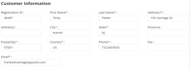· Address1 – The User’s Address (if a Vantage Employee, then 100 Vantage Drive)