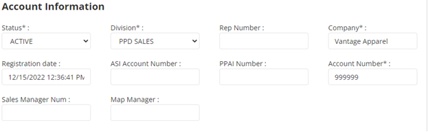 · Account Number – The User’s Vantage Account Number. Vantage Employees are assigned 999999. This allows special access to things like account impersonation in MyVantage etc… NEVER assign a non-Vantage employee this number.