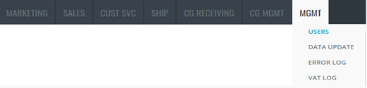 The Web Users page is accessed via the Main Menu by clicking the MGMT button, and by clicking the USERS link.